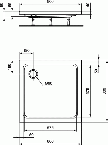 Поддон Hotline 8х80х80 см, акриловый, квадратный, Ideal Standard