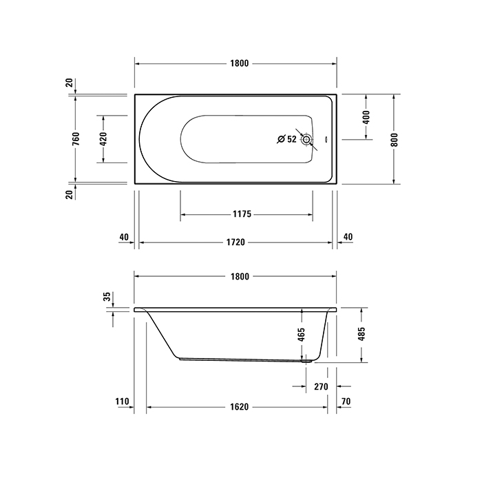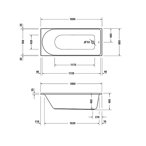 D-Neo 180х80см, акриловая ванна, арт. 700475000000000, Duravit