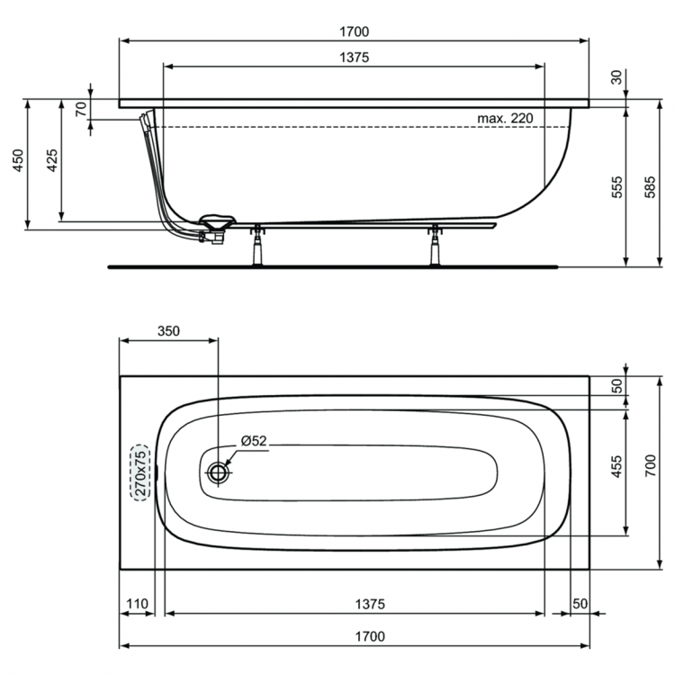I.life 170х70см, акриловая ванна, арт. T475901, Ideal Standard