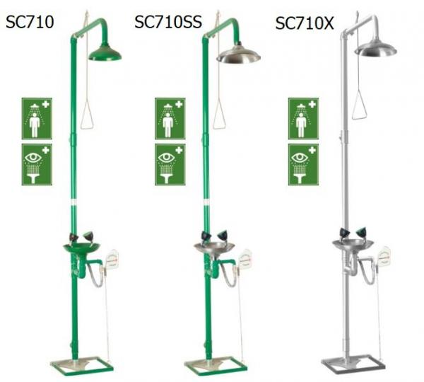 SC710 215см, аварийный душ, из оцинкованной стали с педалью управления и раковиной для промывки глаз, Nofer