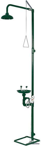 Комбинированный аварийный душ из оцинкованной стали с педалью управления и раковиной для промывки глаз, чаши из полипропилена