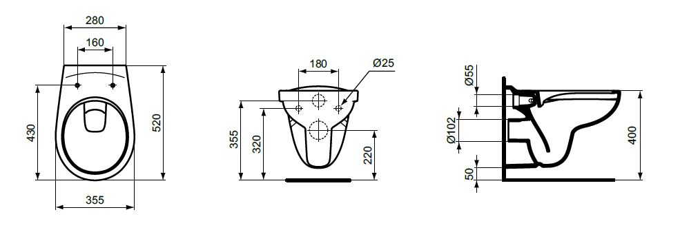 Eurovit 32,5х52см, подвесной унитаз, безободковый, без сиденья, арт. K881001, Ideal Standard