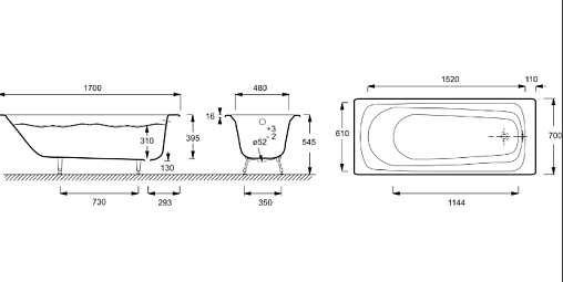 Чугунная ванна Melodie 170х70 см, антискользящее покр., Jacob Delafon