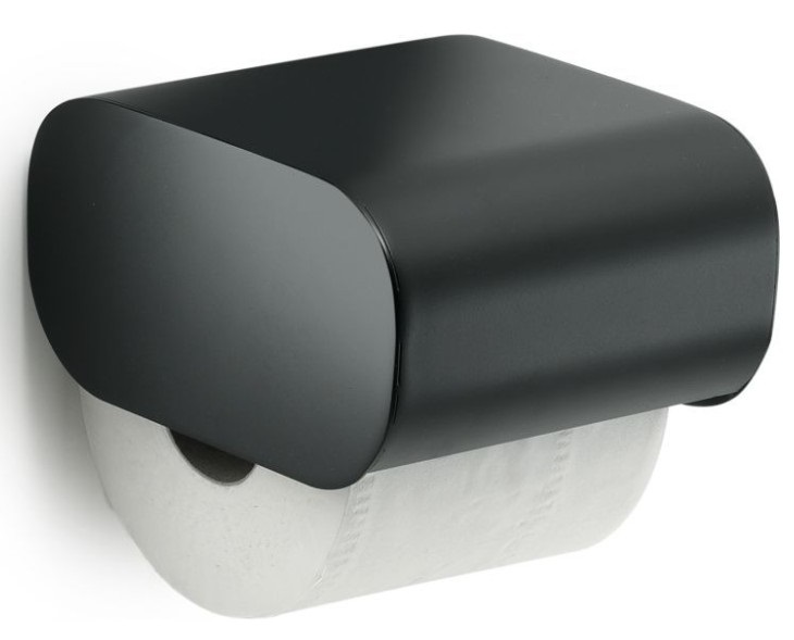 Держатель туалетной бумаги Outline матовый, цвет черный, с крышкой, Gedy