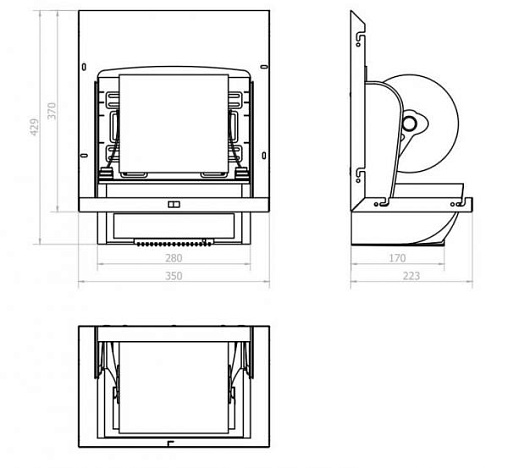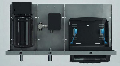 Модульный блок для системы MUMO с автоматическим диспенсером для рулонных бумажных полотенец. Корпус из ABS- пластика на кронштейне из нержавеющей стали, устанавливается за зеркалом.