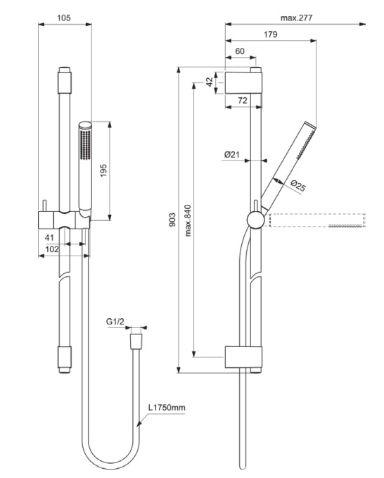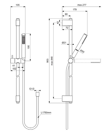 Душевой гарнитур IdealRain 1 режим ручной лейки, золото шлифованное, Ideal Standard