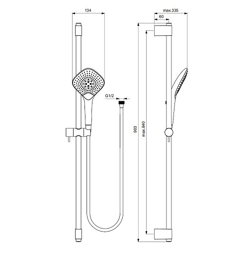 Душевой гарнитур IdealRain штанга 90см, хром, 3 режима, Ideal Standard