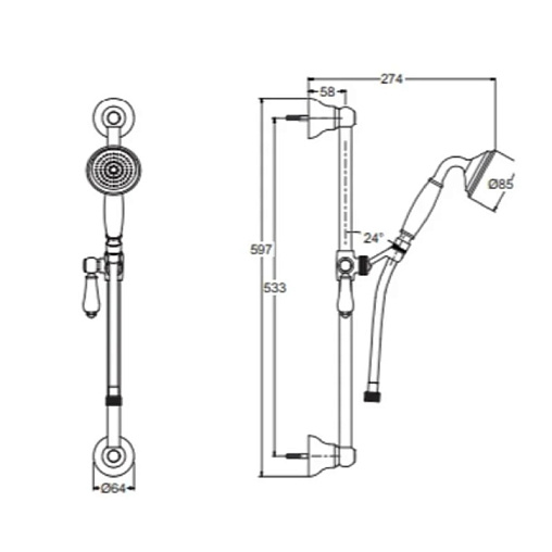 Louise, душевой гарнитур, 1 режим ручной лейки, чёрный цвет, матовый, арт. E24364-BL, Jacob Delafon
