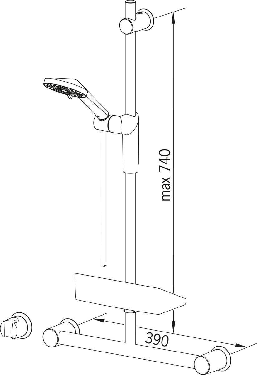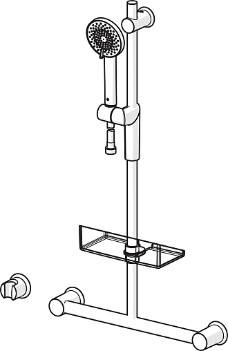 Элементы душа: Ручной душ, Душевая штанга, Регулируемый держатель штанги, Мыльница, Держатель душевой лейки, Шланг для душа (1750 мм),