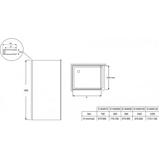 Serenity 120х190см, душевая перегородка walk-in, 6 мм, арт. E14WK120-GA, Jacob Delafon