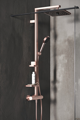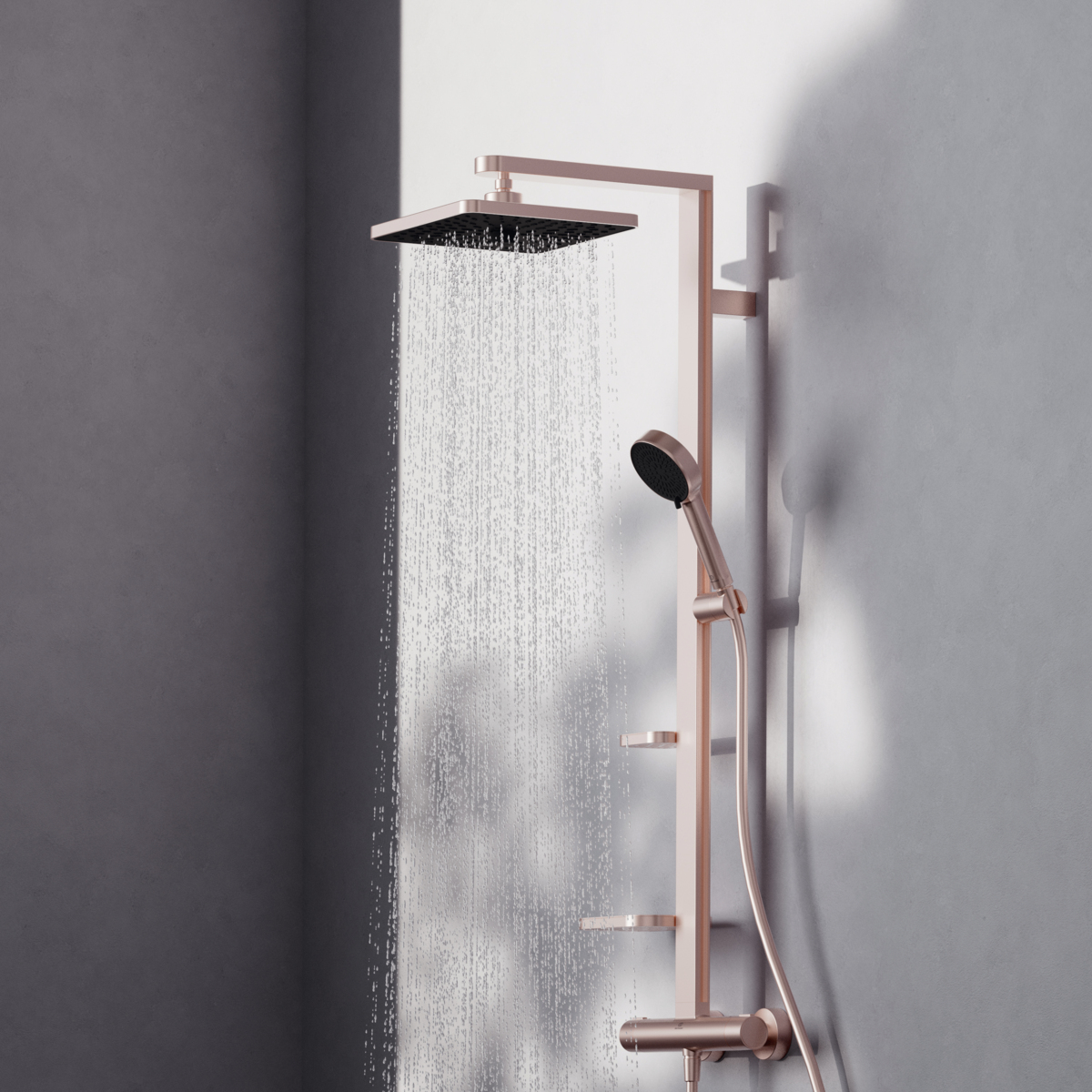 Душевая система без излива Alu + 2 режима ручной лейки, 26 см, square, розовый, термостат, верхний душ, с лейкой, Ideal Standard