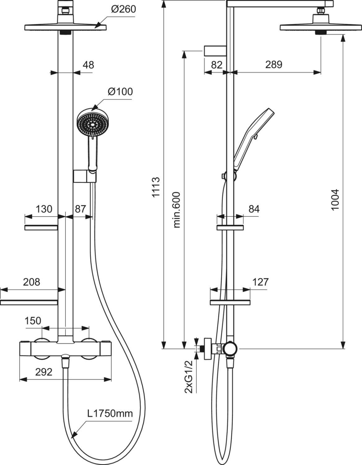 Alu +, душевая система без излива, 2 режима ручной лейки, 26 см, round, чёрный цвет, термостат, верхний душ, с лейкой, матовый, арт. BE211XG, Ideal Standard