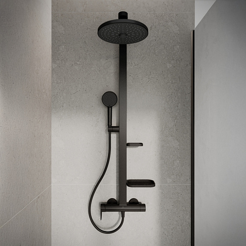 Душевая система без излива Alu + матовый, 2 режима ручной лейки, 26 см, round, чёрный цвет, верхний душ, с лейкой, Ideal Standard