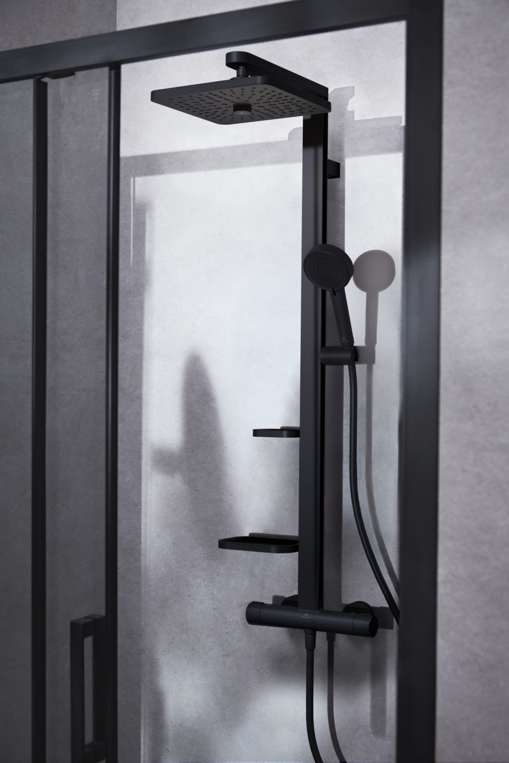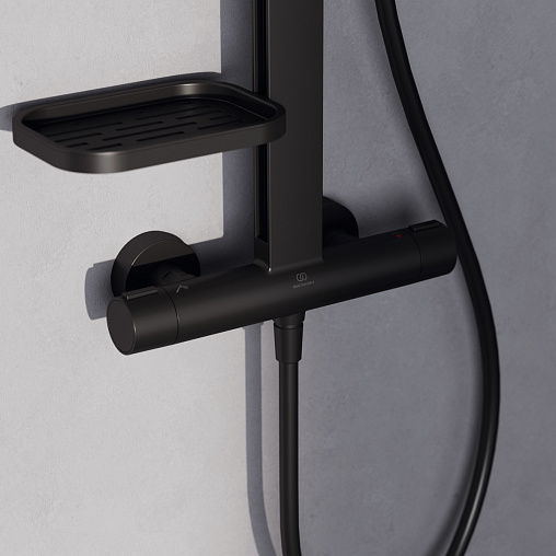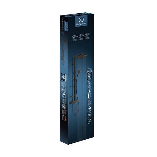 Душевая система без излива Alu + матовый, 2 режима ручной лейки, 26 см, square, чёрный цвет, термостат, верхний душ, с лейкой, Ideal Standard