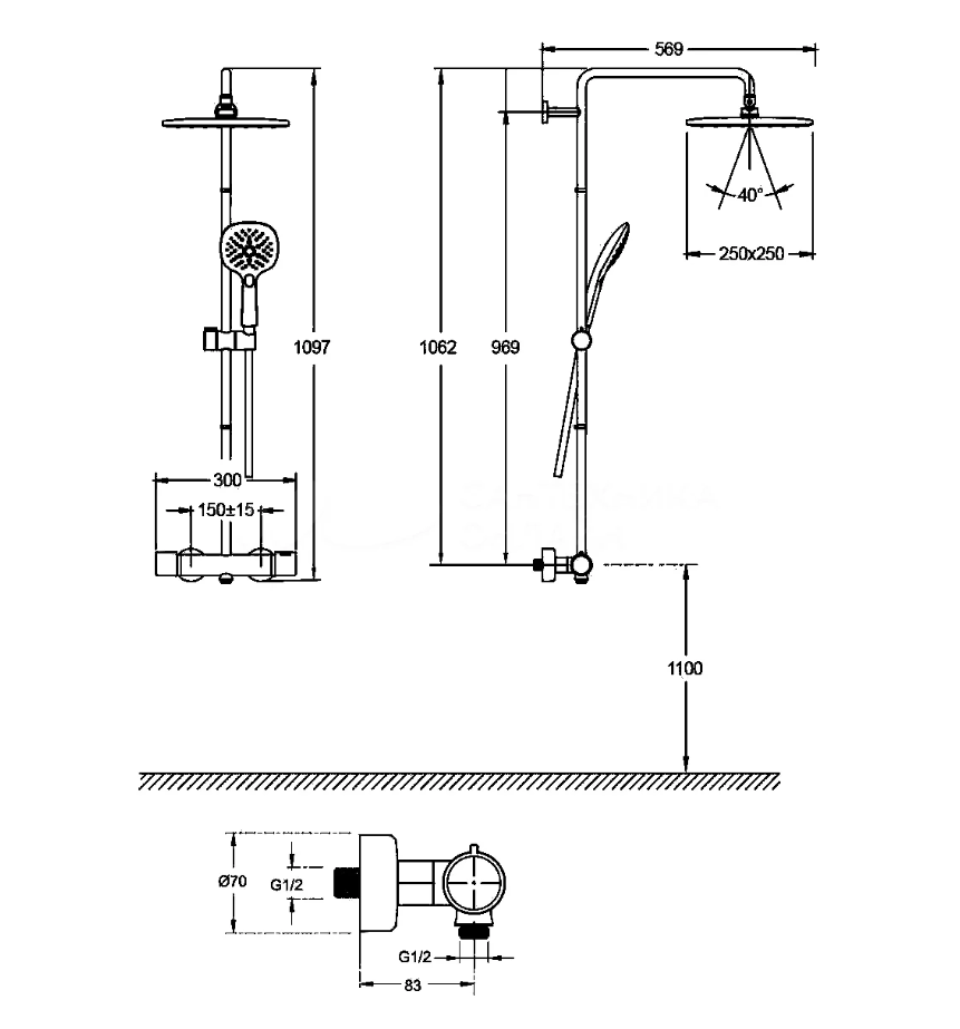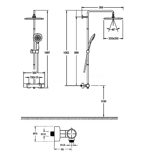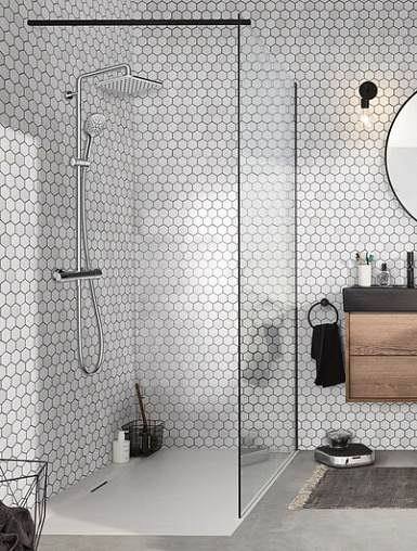 Душевая система без излива Atom 3 режима ручной лейки, 25 см, square, термостат, верхний душ, с лейкой, Jacob Delafon