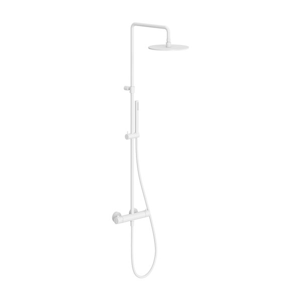 Душевая система без излива белый вельвет, 1 режим ручной лейки, 25 см, round, белый цвет, термостат, верхний душ, с лейкой, Ravak