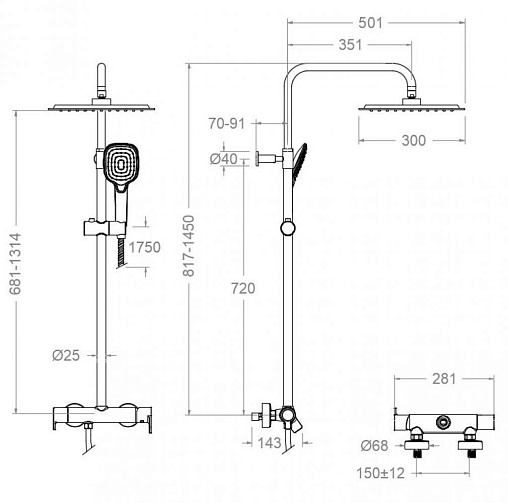 Душевая система с верхним и ручным душем