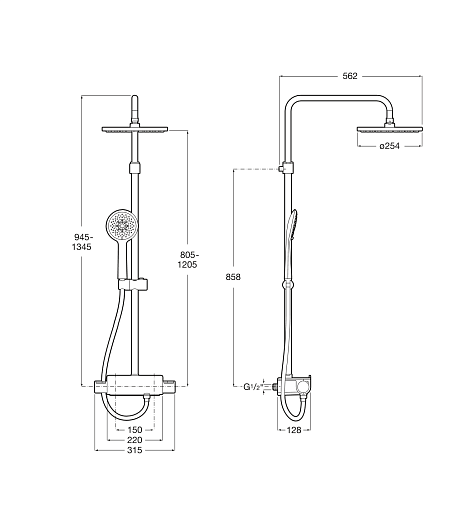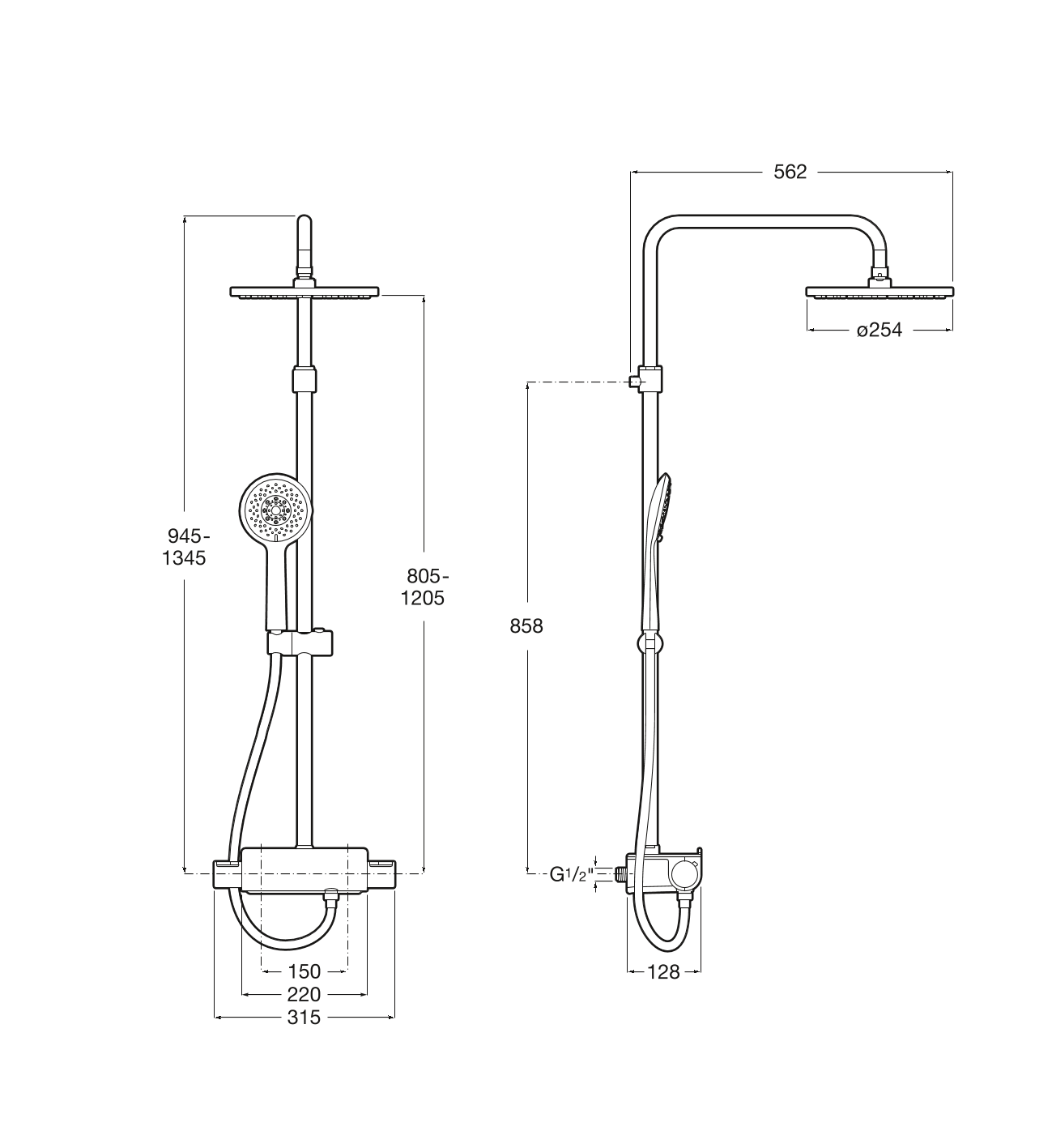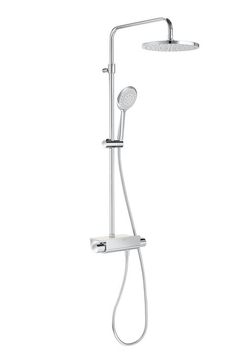 Душевая система без излива Deck-T Round штанга 80-120 см, 2 режима, 26 см, round, термостат, верхний душ, с лейкой, Roca