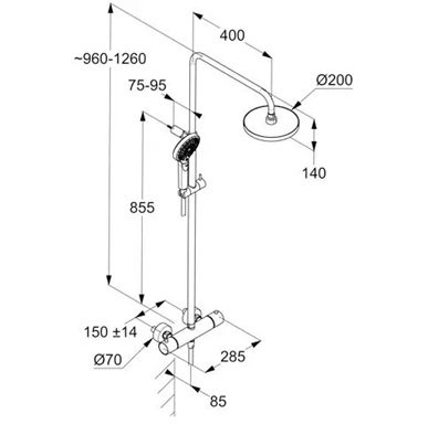 Dive X, душевая система без излива, 3 режима ручной лейки, 20 см, round, чёрный цвет, термостат, верхний душ, с лейкой, матовая, арт. 6907939-00, Klud
