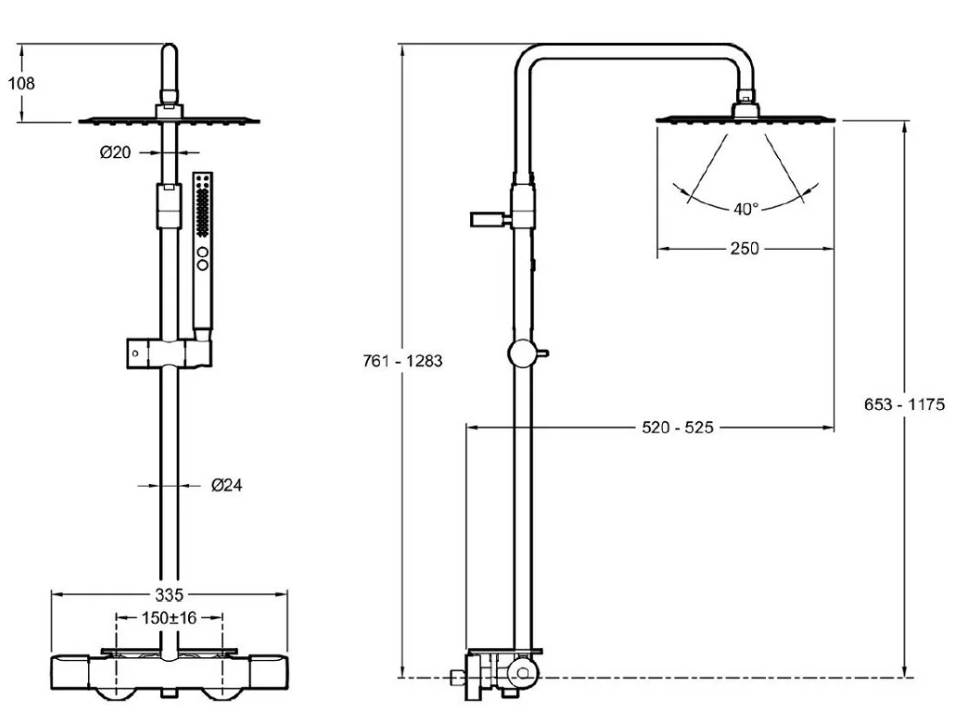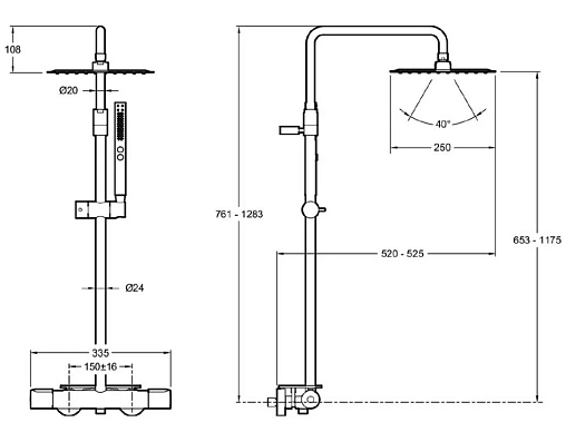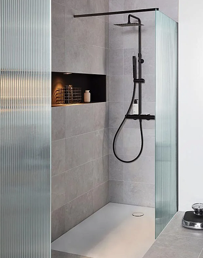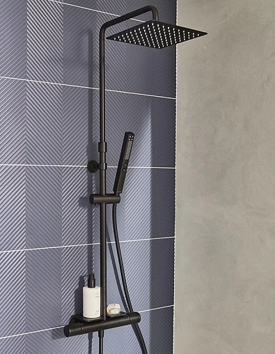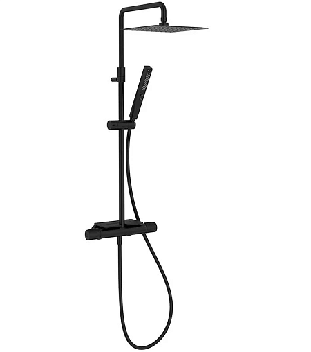 Душевая система без излива Metro матовый, 2 режима ручной лейки, 25 см, square, чёрный цвет, термостат, верхний душ, с лейкой, Jacob Delafon