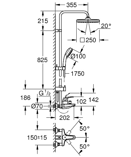 Tempesta Cosmopolitan, душевая система, 4 режима, 25 см, square, неповор. излив, верхний душ, с лейкой, арт. 26693000, Grohe