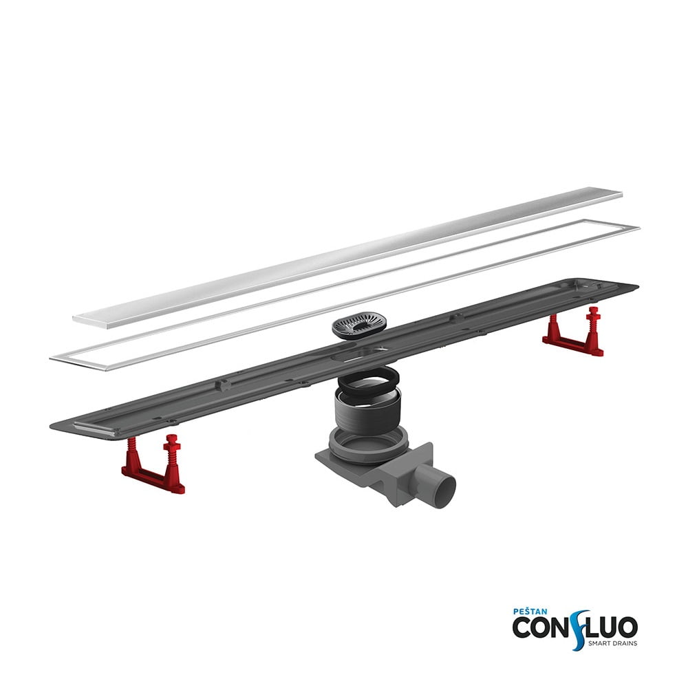 Дренажный желоб Confluo Premium Line 65х5,2 см, сифон с горизонт. выпуском, с решеткой, Pestan