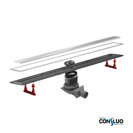 Confluo Premium Line 65х5,2см, дренажный желоб, сифон с горизонт. выпуском, с решеткой, арт. 13100004, Pestan
