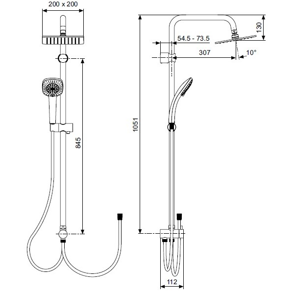 Идеал Рейн Куб - душевая система для установки с настенным смесителем.