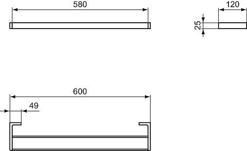 Conca 60см, горизонтальный полотенцедержатель, графит, квадратный дизайн, двойной, арт. T4500A5, Ideal Standard