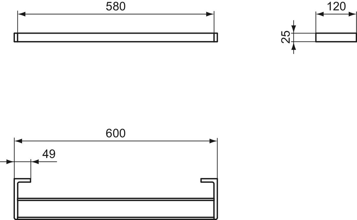 Горизонтальный полотенцедержатель Conca 60 см, квадратный дизайн, двойной, хром, Ideal Standard