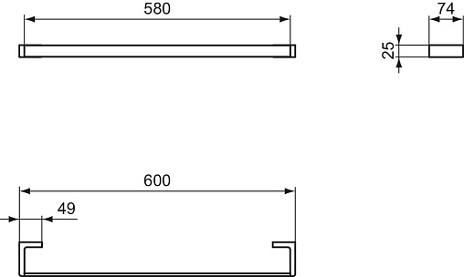 Conca 60см, горизонтальный полотенцедержатель, хром, квадратный дизайн, арт. T4498AA, Ideal Standard