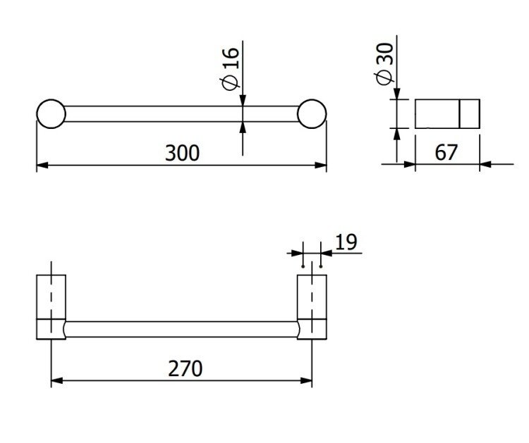Горизонтальный полотенцедержатель Vela R 30 см, оружейная сталь, Kludi