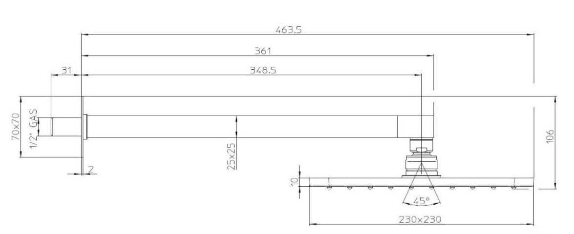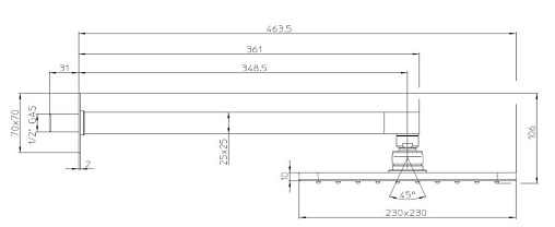 H70000 - душевой кронштейн 350 мм из латуни , 90° Ø 21 mm