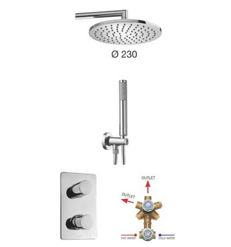 Cosmo, готовый набор для душа (без излива), 1 режим верхней лейки, 1 режим ручной лейки, 23 см, round, 5 функций, easy-clean, арт. M00753.030, Bossini