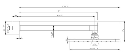 I00597 - верхний душ Cosmo 230 x 230 мм на шарнире 1/2” F, 1 вид струи, оснащен системой “Easy-Clean” имеет диффузоры из резины