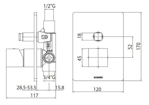 Z00005 - смеситель механический встраиваемый с девертором 2 потребителя 1/2”