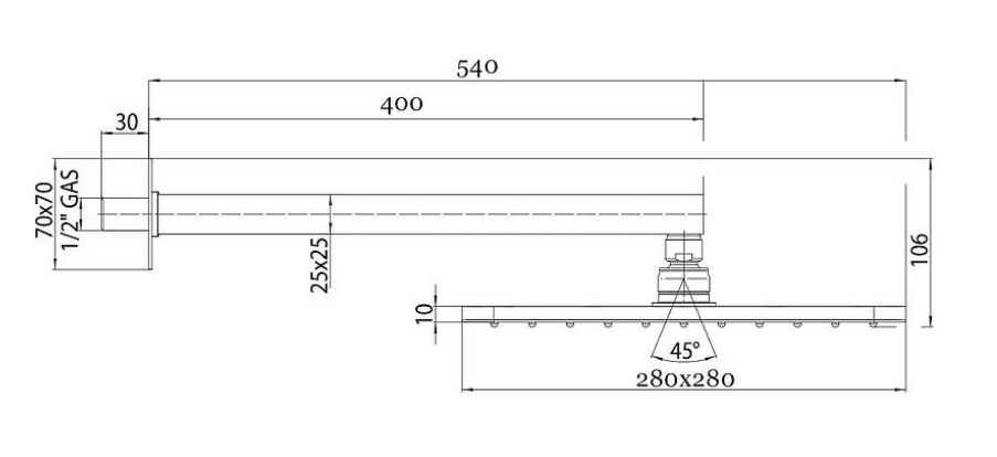 H70000 - душевой кронштейн 400 мм из латуни