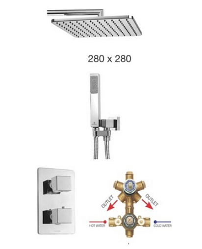 Cosmo, готовый набор для душа (без излива), 1 режим верхней лейки, 1 режим ручной лейки, 28 см, square, 5 функций, easy-clean, арт. M00756.030, Bossini