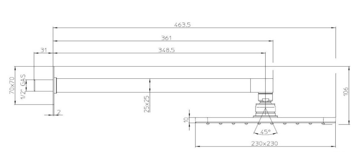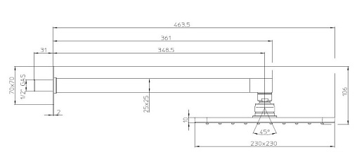 H69000 - душевой кронштейн 350 мм, сечение 25 mm