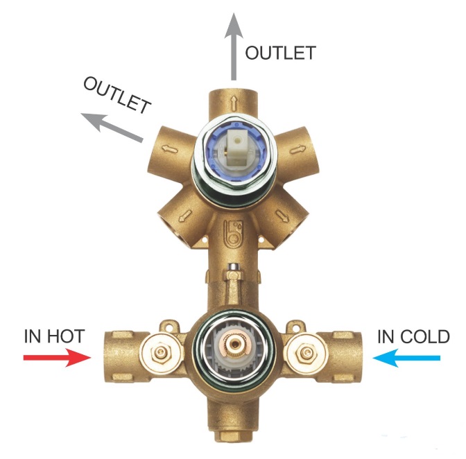 Z00130 - встроенная часть однорычажного универсального смесителя с дивертером на 2-5 выходов, подключение 1/2”, набор для настройки на 2/3/4/5 выходов.