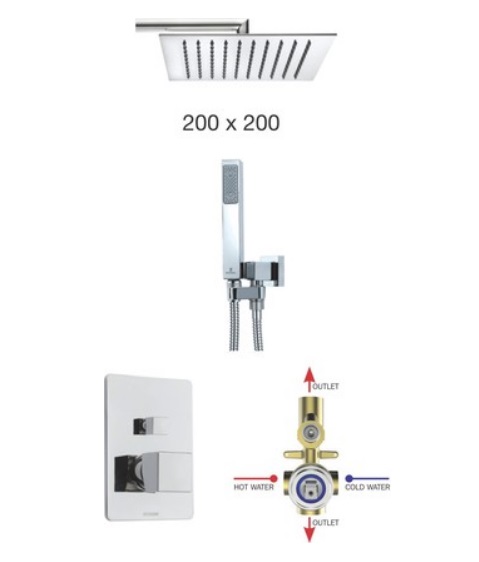 Готовый набор для душа (без излива) Tetis 1 режим верхней лейки, 1 режим ручной лейки, 20 см, square, 2 функции, Bossini