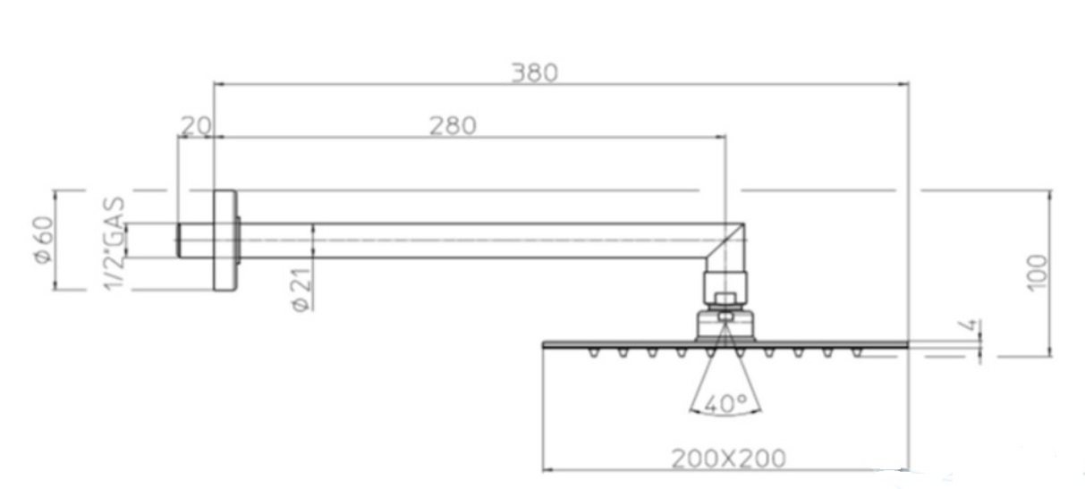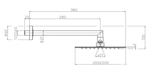 I00870 - верхний душ TETIS из стали inox AISI 304 200 x 200 мм, 4 мм толщина, 1 вид струи, оснащен системой “Easy-Clean” имеет диффузоры из резины.
