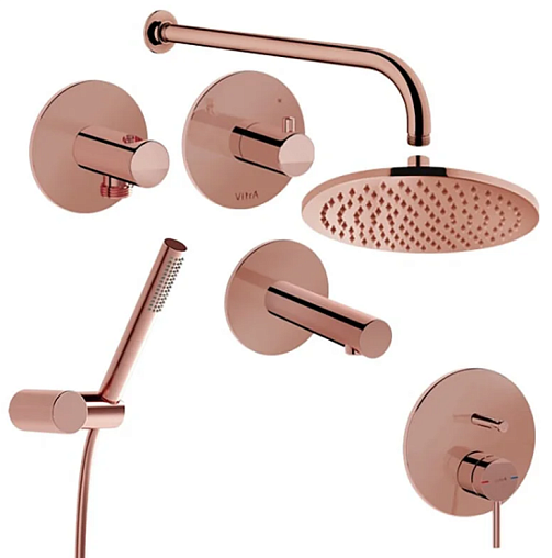 Готовые встраиваемые наборы для ванны (с изливом) Origin длина излива 13см, 1 режим верхней лейки, 1 режим ручной лейки, 25 см, round, 3 функции, медь, Vitra