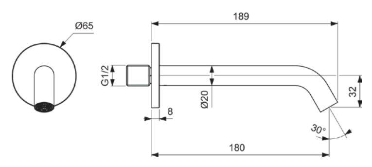 Настенный излив для ванны 180 мм, подключение 1/2", металлическая розетка 65 мм Silk Black (Черный матовый)