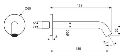 Ceraline nuovo, излив, длина излива 18см, чёрный цвет, неповоротный, матовый, арт. BD973XG, Ideal Standard