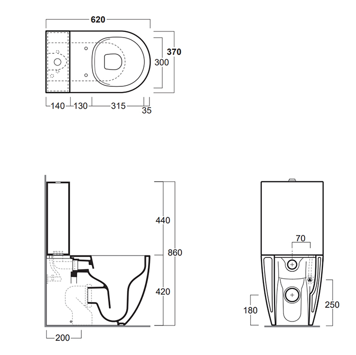 Бачок унитаза Vignoni без механизма слива d20, нижняя подводка, Simas