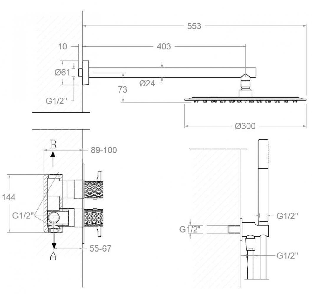 Комплект смесителей Odisea joya термостат, золото, душевой гарнитур, верхний душ, Ramon Soler