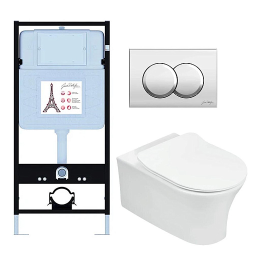 Комплект унитаза с инсталляцией Aleo глубина унитаза 50,5см, клавиша хром глянец, с микролифтом, безободковый, быстросъемное, Jacob Delafon