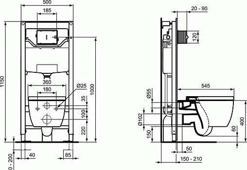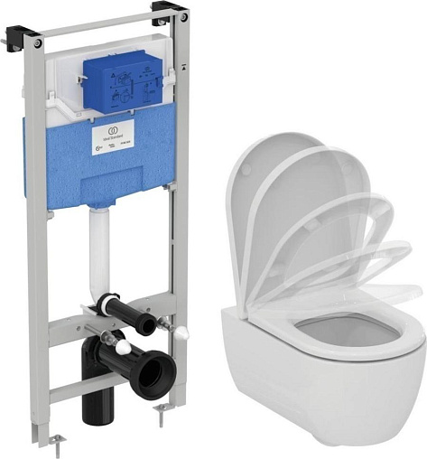 Комплект унитаза с инсталляцией Blend Curve aquablade, без клавиши в комплекте, с микролифтом, быстросъемное, Ideal Standard