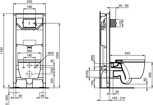 Унитаз подвесной Ideal Standard Blend Сurve T374901 Крышка-сиденье для унитаза Ideal Standard Blend Сurve T520801 Инсталляция для унитаза Ideal Standard Prosys Frame 120 M R020467